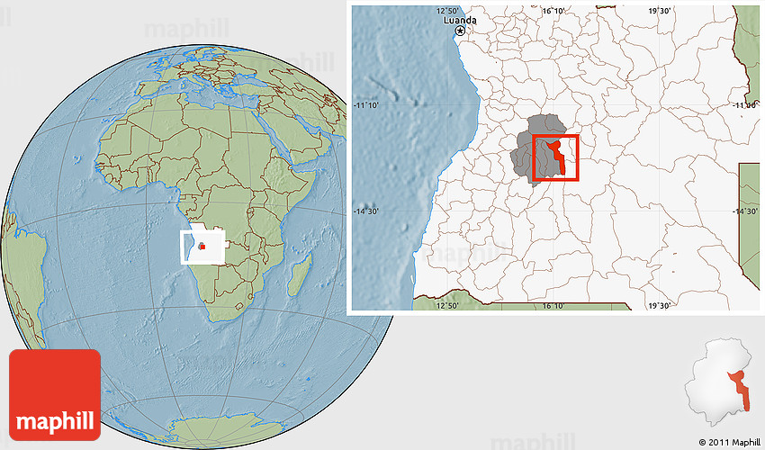 Maphill is a collection of map images. This image combines a savanna style map with the globe centered on Katchiungo. Use the buttons under the image to switch to different map types.
