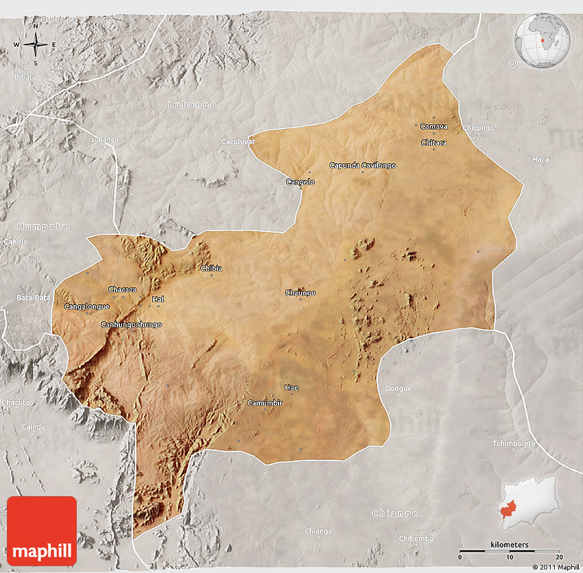 Maphill is a collection of map images. This view of Chibia at an angle of 60° is one of these images. Click on the Detailed button under the map for a more comprehensive map.