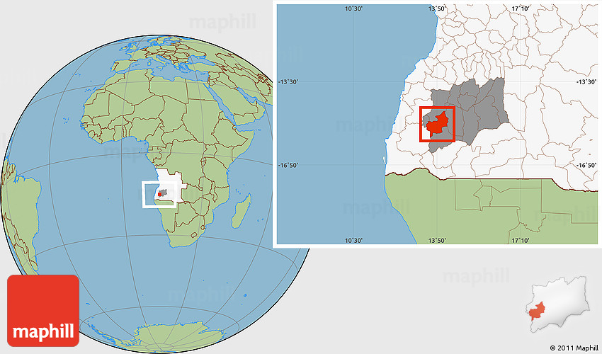 Maphill is a collection of map images. This image combines a savanna style map with the globe centered on Chibia. Use the buttons under the image to switch to different map types.