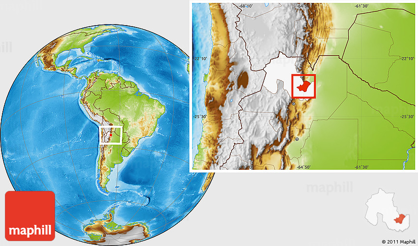 Maphill is a collection of map images. This image combines a physical map with the globe centered on Ledesma. Use the buttons under the image to switch to different map types.