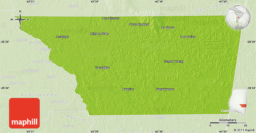 Maphill is a collection of map images. This physical map of General Taboada is one of them. Click on the Detailed button under the image to switch to a more detailed map.