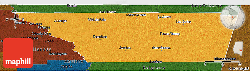The panoramic political map represents one of several map types and styles available. Look at General Taboada, Santiago del Estero, Argentina from different perspectives.