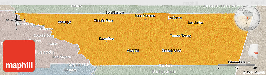 The panoramic political map represents one of several map types and styles available. Look at General Taboada, Santiago del Estero, Argentina from different perspectives.