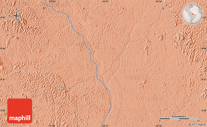 The value of Maphill lies in the possibility to look at the same area from several perspectives. Maphill presents the map of the area around 0° 42' 2" N, 56° 52' 30" W in a wide variety of map types and styles.
