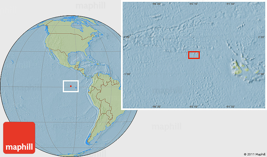 The location map of the area around 0° 42' 2" N, 95° 7' 30" W combines two projections: the orthographic azimuthal projection for the globe and the simple geographic projection for the rectangular part of the map. Geographic projection has straight meridians and parallels, each degree of latitude and longitude is the same size over the entire world map.
