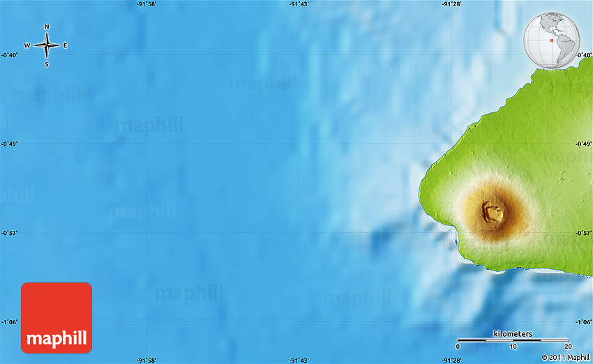 Maphill is a collection of map images. This physical map of the area around 0° 52' 31" S, 91° 43' 29" W is one of them. Click on the Detailed button under the image to switch to a more detailed map.