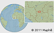 Maphill is a collection of map images. This image combines a savanna style map with the globe centered on the area around 10° 7' 21" N, 6° 43' 29" W. Use the buttons under the image to switch to different map types.