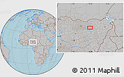 Maphill is a collection of map images. This image combines a gray map with the globe centered on the area around 11° 40' 49" N, 10° 16' 30" E. Use the buttons under the image to switch to different map types.
