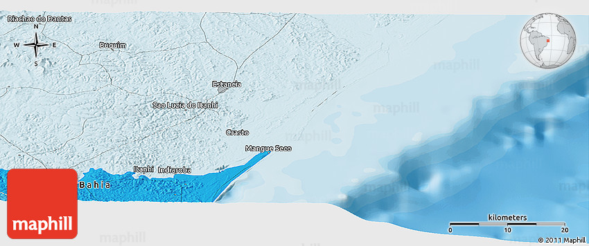 Maphill is a collection of map images. This perspective view of the area around 11° 20' 3" S, 37° 19' 30" W at an angle of 30° is one of these images. Use the Detailed button under the image to switch to a detailed map.