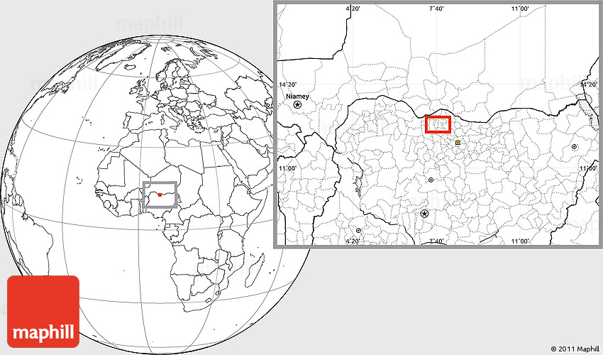 Maphill is a collection of map images. This image combines a blank map with the globe centered on the area around 12° 42' 56" N, 7° 43' 29" E. Use the buttons under the image to switch to different map types.