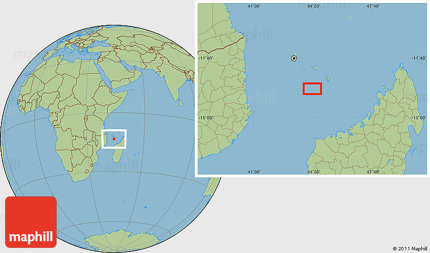 The value of Maphill lies in the possibility to look at the same area from several perspectives. Maphill presents the map of the area around 13° 24' 15" S, 44° 16' 29" E in a wide variety of map types and styles.