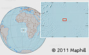 Maphill is a collection of map images. This image combines a gray map with the globe centered on the area around 13° 24' 15" S, 4° 19' 30" E. Use the buttons under the image to switch to different map types.