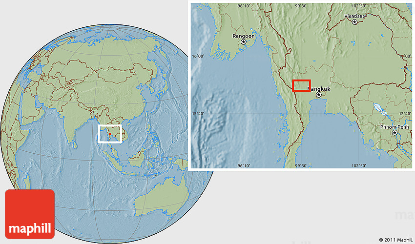 Maphill is a collection of map images. This image combines a savanna style map with the globe centered on the area around 14° 15' 49" N, 99° 31' 30" E. Use the buttons under the image to switch to different map types.