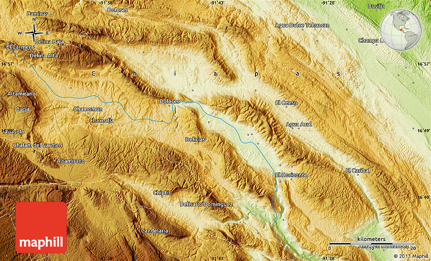 Maphill is a collection of map images. This physical map of the area around 16° 49' 43" N, 91° 43' 29" W is one of them. Click on the Detailed button under the image to switch to a more detailed map.