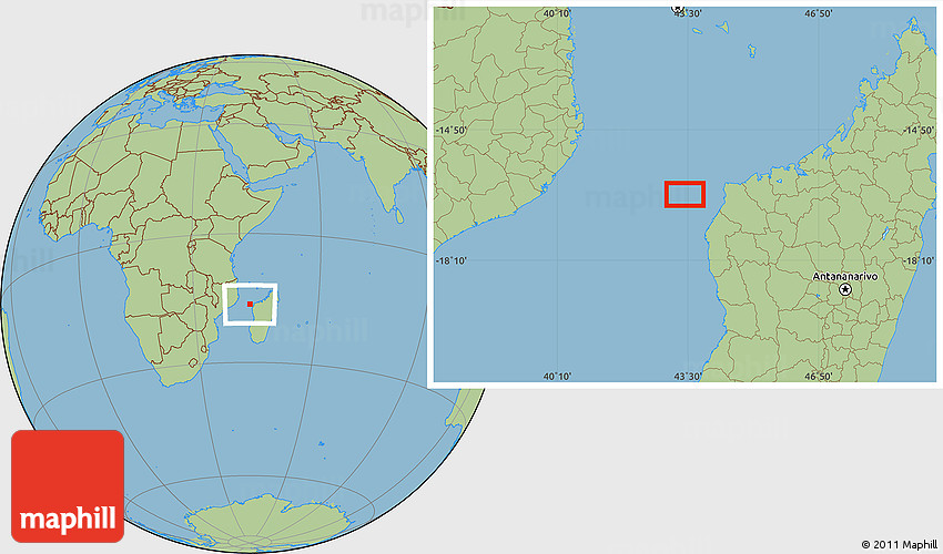 Maphill is a collection of map images. This image combines a savanna style map with the globe centered on the area around 16° 29' 14" S, 43° 25' 29" E. Use the buttons under the image to switch to different map types.