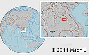 Maphill is a collection of map images. This image combines a gray map with the globe centered on the area around 17° 20' 20" N, 103° 46' 30" E. Use the buttons under the image to switch to different map types.