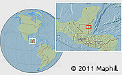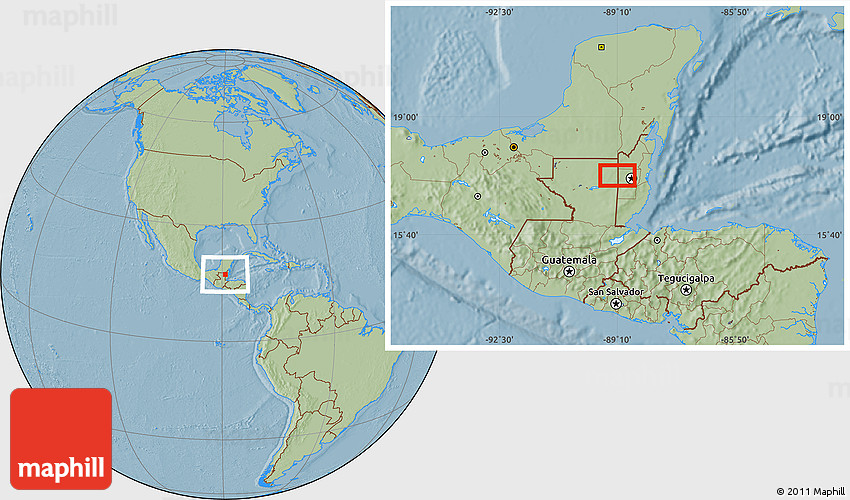 Maphill is a collection of map images. This image combines a savanna style map with the globe centered on the area around 17° 20' 20" N, 89° 10' 30" W. Use the buttons under the image to switch to different map types.