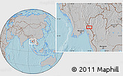 The gray location map represents one of several map types and styles available. Look at the area around 17° 50' 55" N, 97° 49' 29" E from different perspectives.