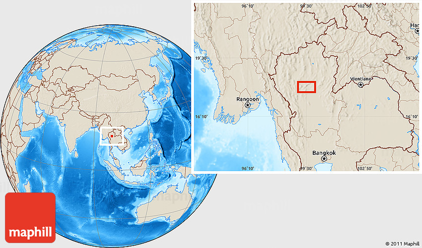 Maphill is a collection of map images. This image combines a shaded relief map with the globe centered on the area around 17° 50' 55" N, 99° 31' 30" E. Use the buttons under the image to switch to different map types.