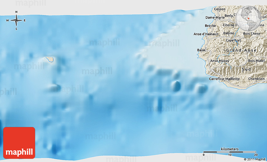 Maphill is a collection of map images. This view of the area around 18° 21' 26" N, 74° 43' 29" W at an angle of 60° is one of these images. Click on the Detailed button under the map for a more comprehensive map.