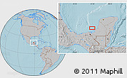 The gray location map represents one of several map types and styles available. Look at the area around 19° 22' 18" N, 91° 43' 29" W from different perspectives.
