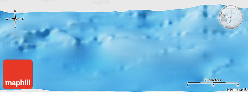 Shaded relief map shows landscape features, such as mountains, valleys and plateaus. Flat areas are smooth on the map, areas with steep slopes and mountains appear more rough. The above map of the area around 19° 2' 1" S, 176° 52' 30" E was created using a digital elevation model.