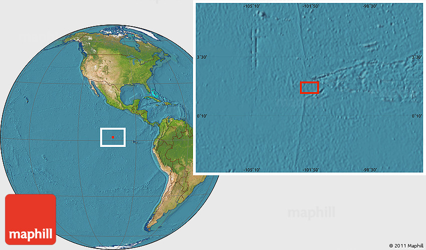 Maphill is a collection of map images. This image combines a satellite map with the globe centered on the area around 1° 45' 3" N, 101° 55' 30" W. Use the buttons under the image to switch to different map types.