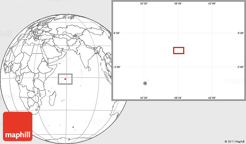 Maphill is a collection of map images. This image combines a blank map with the globe centered on the area around 1° 24' 2" S, 58° 43' 30" E. Use the buttons under the image to switch to different map types.