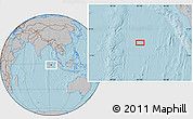The gray location map represents one of several map types and styles available. Look at the area around 1° 24' 2" S, 92° 43' 29" E from different perspectives.