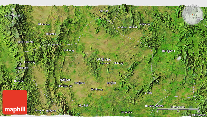 Satellite map shows the Earth's surface as it really looks like. The above map is based on satellite images taken on July 2004. This satellite map of the area around 21° 23' 18" N, 97° 49' 29" E is meant for illustration purposes only. For more detailed maps based on newer satellite and aerial images switch to a detailed map view.