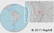 Maphill is a collection of map images. This image combines a gray map with the globe centered on the area around 21° 3' 11" S, 66° 13' 29" W. Use the buttons under the image to switch to different map types.