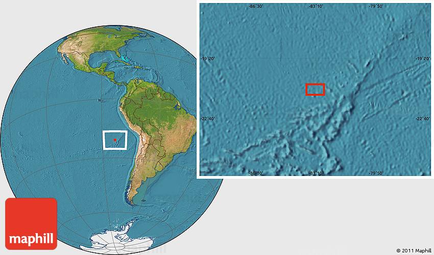 Maphill is a collection of map images. This image combines a satellite map with the globe centered on the area around 21° 3' 11" S, 83° 13' 29" W. Use the buttons under the image to switch to different map types.