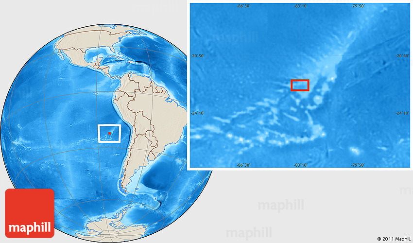 Maphill is a collection of map images. This image combines a shaded relief map with the globe centered on the area around 22° 33' 23" S, 83° 13' 29" W. Use the buttons under the image to switch to different map types.