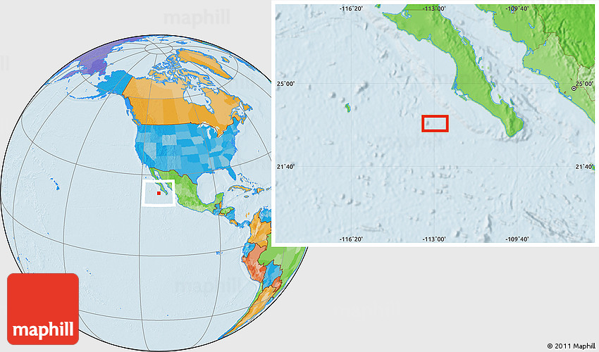 Maphill is a collection of map images. This image combines a political map with the globe centered on the area around 23° 23' 16" N, 112° 58' 29" W. Use the buttons under the image to switch to different map types.