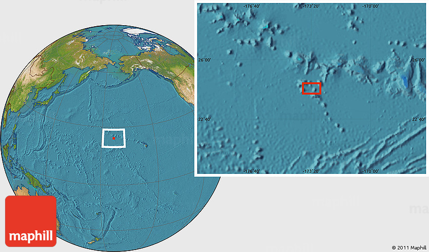 Maphill is a collection of map images. This image combines a satellite map with the globe centered on the area around 24° 22' 49" N, 173° 19' 29" W. Use the buttons under the image to switch to different map types.