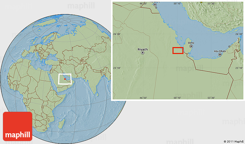 Maphill is a collection of map images. This image combines a savanna style map with the globe centered on the area around 24° 52' 30" N, 50° 13' 30" E. Use the buttons under the image to switch to different map types.
