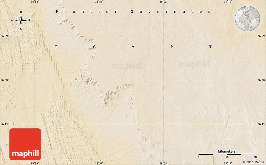The value of Maphill lies in the possibility to look at the same area from several perspectives. Maphill presents the map of the area around 26° 50' 27" N, 28° 58' 30" E in a wide variety of map types and styles.