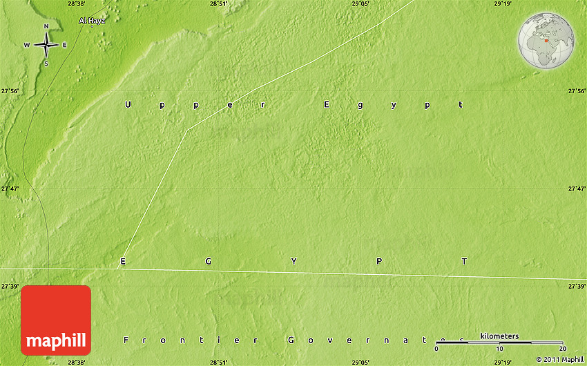 Each map type offers different information and each map style is designed for a different purpose. Read about the styles and map projection used in the above map (Physical Map of the Area around 27° 48' 57" N, 28° 58' 30" E).