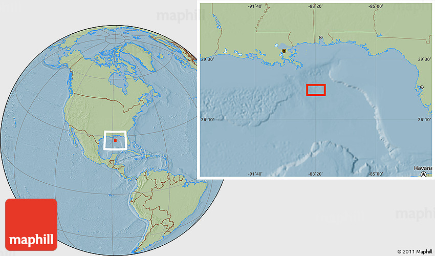 Maphill is a collection of map images. This image combines a savanna style map with the globe centered on the area around 27° 48' 57" N, 88° 19' 29" W. Use the buttons under the image to switch to different map types.