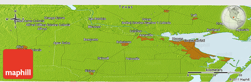Embed the above physical panoramic map of the area around 27° 48' 57" N, 97° 40' 30" W into your website. Enrich your blog with quality map graphics. Make the web a more beautiful place.