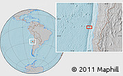 Maphill is a collection of map images. This image combines a gray map with the globe centered on the area around 27° 58' 39" S, 72° 10' 30" W. Use the buttons under the image to switch to different map types.