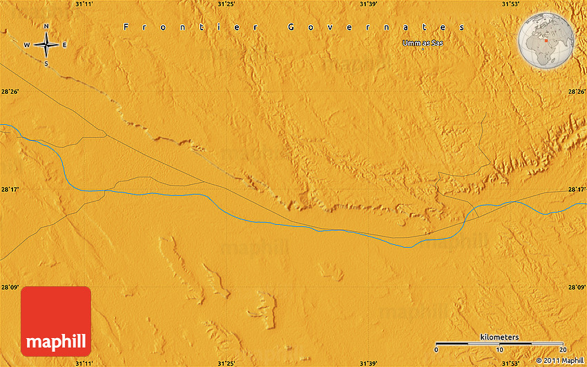 The value of Maphill lies in the possibility to look at the same area from several perspectives. Maphill presents the map of the area around 28° 18' 5" N, 31° 31' 29" E in a wide variety of map types and styles.