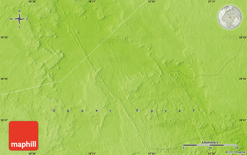 Each map type offers different information and each map style is designed for a different purpose. Read about the styles and map projection used in the above map (Physical Map of the Area around 28° 47' 8" N, 28° 58' 30" E).