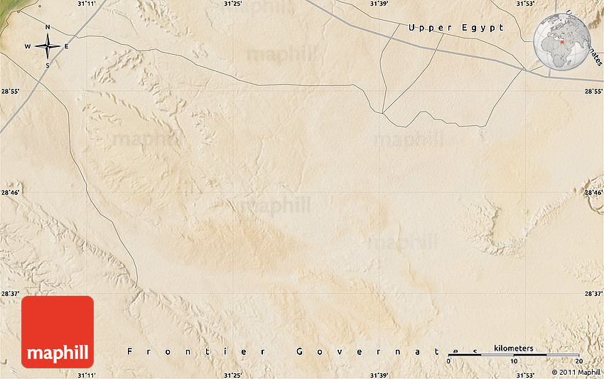 The value of Maphill lies in the possibility to look at the same area from several perspectives. Maphill presents the map of the area around 28° 47' 8" N, 31° 31' 29" E in a wide variety of map types and styles.