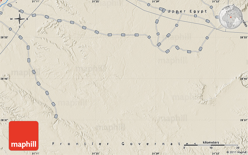 Maphill is a collection of map images. This shaded relief map of the area around 28° 47' 8" N, 31° 31' 29" E is one of them. Click on the Detailed button under the image to switch to a more detailed map.