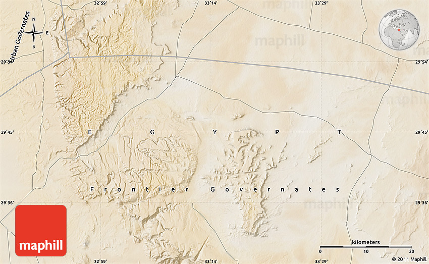 The value of Maphill lies in the possibility to look at the same area from several perspectives. Maphill presents the map of the area around 29° 44' 59" N, 33° 13' 30" E in a wide variety of map types and styles.