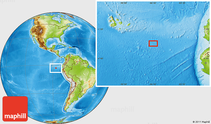Maphill is a collection of map images. This image combines a physical map with the globe centered on the area around 2° 58' 32" S, 86° 37' 30" W. Use the buttons under the image to switch to different map types.