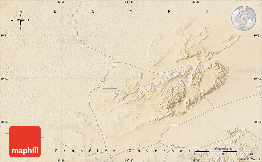 The value of Maphill lies in the possibility to look at the same area from several perspectives. Maphill presents the map of the area around 30° 42' 29" N, 33° 13' 30" E in a wide variety of map types and styles.