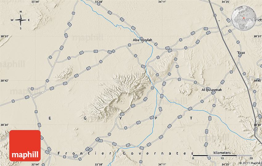 Maphill is a collection of map images. This shaded relief map of the area around 30° 42' 29" N, 34° 4' 30" E is one of them. Click on the Detailed button under the image to switch to a more detailed map.
