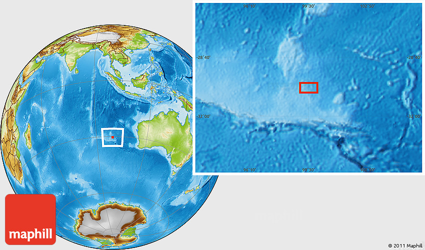 Maphill is a collection of map images. This image combines a physical map with the globe centered on the area around 30° 23' 20" S, 99° 31' 30" E. Use the buttons under the image to switch to different map types.